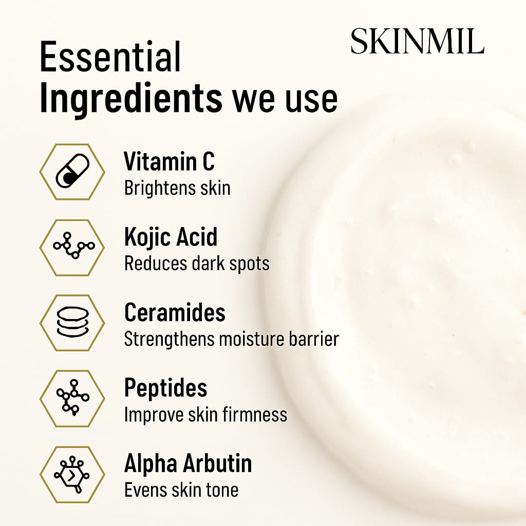 This cream works gently with your skin to restore clarity, softness, and a naturally healthy glow. Unlike harsh bleaching agents, our formula strengthens the skin barrier while providing essential SPF30 protection.